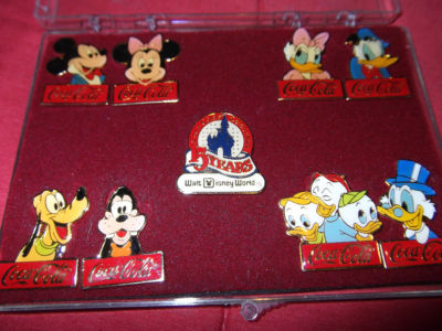 Title (ebay affiliate link): Coca Cola Coke Disney Pin Set Disney World Anniversary