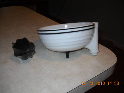 Vintage Juicer attachment Milk Glass Black Stripe Ream