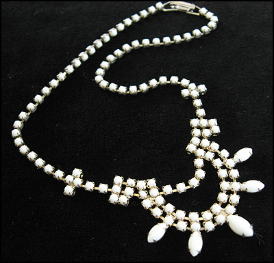 Vintage 50s WHITE milk-glass rhinestone choker-NECKLACE