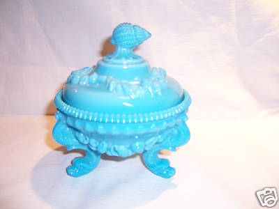 PORTIEUX VALLERYSTHAL BLUE MILK GLASS DOLPHIN CANDY