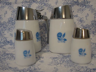 Vintage Starline Set of 4 White Milk Glass Blue Flower