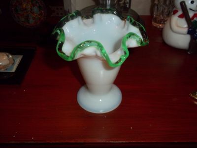 FENTON..MILK GLASS /GREEN SILVERCREST SMALL VASE.