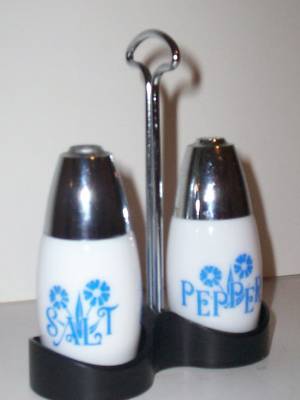 VINTAGE MILK GLASS SALT & PEPPER SHAKERS W/STAND