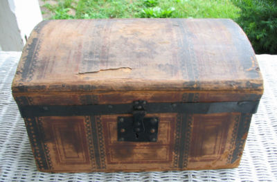 Title (ebay affiliate link): Vintage Small Steamer Trunk Wallpaper Doll Size w/ Tray