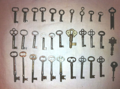 Title (ebay affiliate link): 33 antique skeleton lock furniture clock keys steel