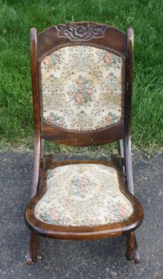 Title (ebay affiliate link): ANTIQUE VINTAGE WOOD & TAPESTRY FOLDING SEWING ROCKER