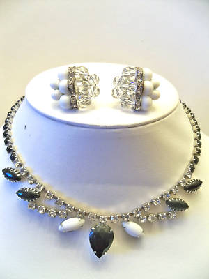 Vtg RS & Milk Glass Necklace & Earring Married Set