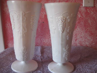 1-PAIR WHITE MILK GLASS VASES. 9 7/8 INCHES TALL