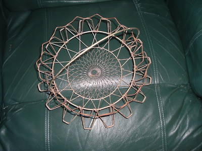 Old Folding Wire Milk Glass Easter Egg Basket w/Bail