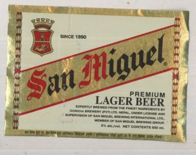 NEPAL SAN MIGUEL BREWERY BEER LABEL 650 ML