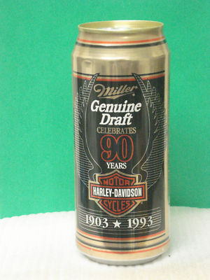 Title (ebay affiliate link): H-D Beer-16 oz-Alum-BO-Miller-Milwaukee, WI-90 Years
