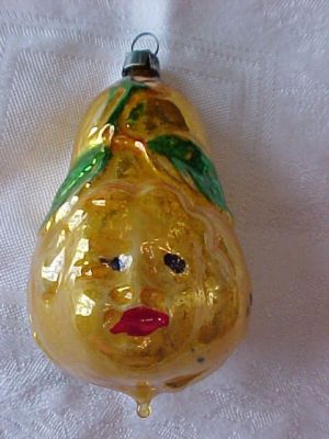 Vintage Pear Shape Face Figural Xmas Tree Orn