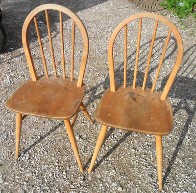 Title (ebay affiliate link): 2 ERCOL CHAIRS. ELM. SCRUFFY FROM USE/STORAGE. STURDY
