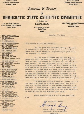 Rare Roosevelt & Truman Texas victory Committe Letter