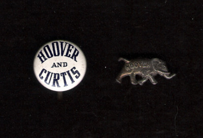Title (ebay affiliate link): 2 HERBERT HOOVER, CURTIS pin & elephant studback button