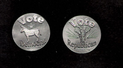 Title (ebay affiliate link): engraved,brushed metal Democrat/Republican VOTE token