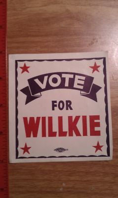 Title (ebay affiliate link): Wendell Willkie 1940 FDR campaign window sticker
