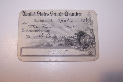 1928 Admissions Pass to the U. S. Senate Chamber
