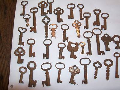 LOT OF ANTIQUE LOCK-FURNITURE & MORE KEYS 35 pcs