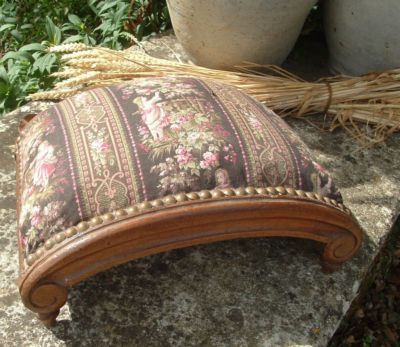 Title (ebay affiliate link): PETIT ANTIQUE FRENCH SHABBY-CHIC UPHOLSTERED FOOTSTOOL
