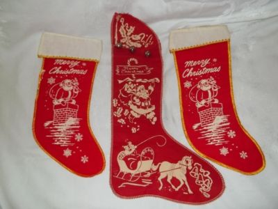 Title (ebay affiliate link): 3 VINTAGE FLANNEL CHRISTMAS STOCKINGS, BELLS, 40'S-50'S