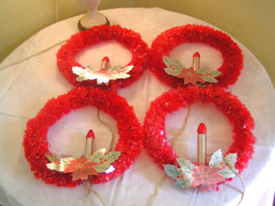 Title (ebay affiliate link): 4 VTG Cellophane Christmas wreath Lights RED Matching