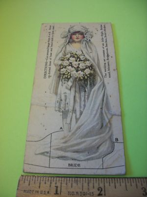 Antique Victorian Trade card JP Coats Clarks Bride doll