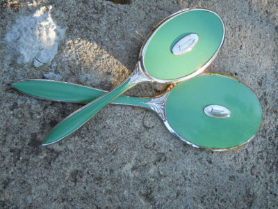 Title (ebay affiliate link): VTG Antique Deco Chrome Green Vanity Set NICE!! NR!!