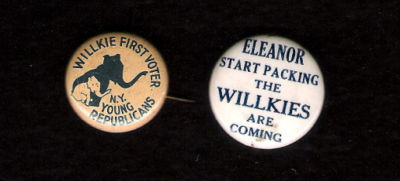 2 WENDELL WILLKIE buttons:NY Young Republicans,anti-FDR