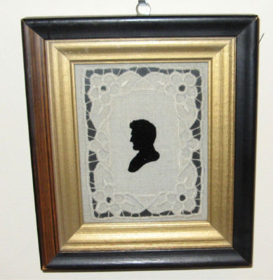 Title (ebay affiliate link): VINTAGE FRAMED ABE LINCOLN SILHOUETTE ON LINEN CUTWORK