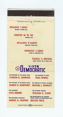 Title (ebay affiliate link): Lyndon Johnson President Hubert Humphrey 1964 Matchbook