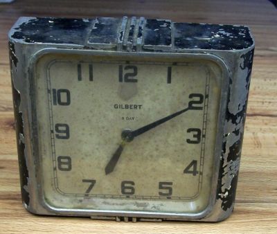 Title (ebay affiliate link): Antique Gilbert solid Metal Wind Up Clock- Shelf /Wall