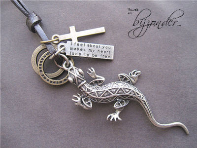 Title (ebay affiliate link): Fashion Leather Necklace Antique Lizard Multi Pendant