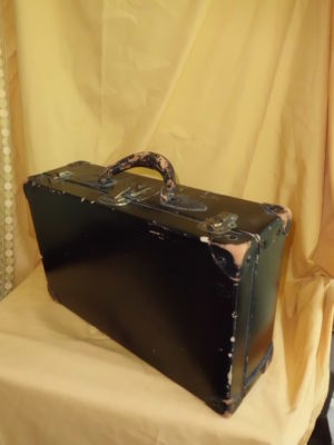 Antique Railroad Doll ? Leather Luggage Suitcase w Key