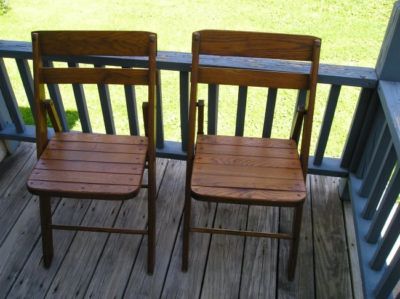 Two Oak antique Folding chairs