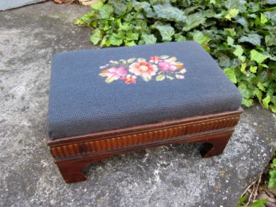 Title (ebay affiliate link): Antique Vintage Wooden Stool Blue Needlepoint Cover