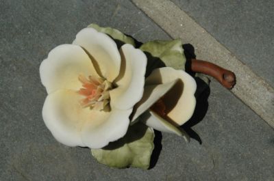 Title (ebay affiliate link): Vintage Capodimonte Double Yellow Rose w Leaves Stem Vg