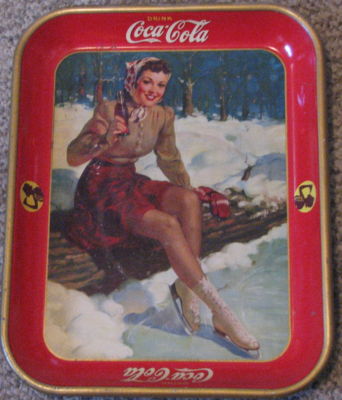 Title (ebay affiliate link): TRAY 1941 COCA COLA COKE ICE SKATER BABE METAL ANTIQUE