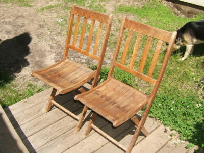 Title (ebay affiliate link): 2 MISSION ANTIQUE FOLDING CHAIRS CONTOUR SEAT BENETT