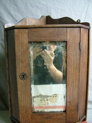 Title (ebay affiliate link): 1900 ANTIQUE OAK HANGING MEDICINE CORNER CABINET MIRROR