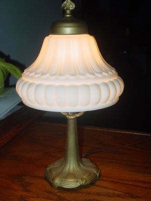 VINTAGE METAL LAMP WITH MILK GLASS SHADE VERY NICE