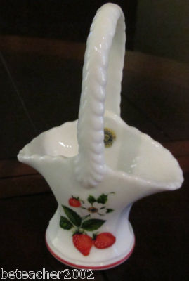 Vtg Westmoreland Milk Glass Strawberry Brides Basket