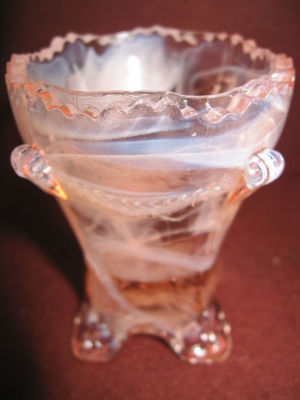 DERPRESSION PINK GLASS TOOTHPICK MATCH HOLDER MILK SLAG