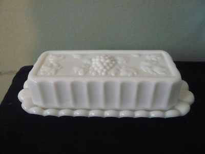 WESTMORELAND MILK GLASS GRAPE BUTTER DISH W/ LID