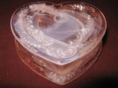 DEPRESSION PINK ART GLASS HEART POWDER JEWELRY BOX MILK