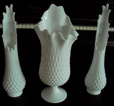 Vintage Fenton White Milk Glass Tall Hobnail Vase set