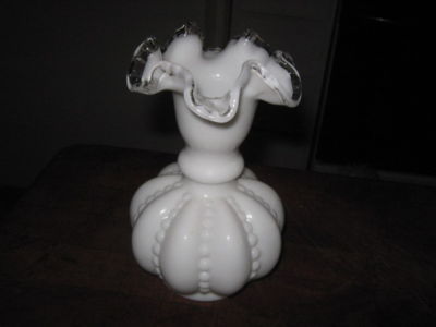 Fenton Milk Glass Silver Crest Beaded Melon Vase