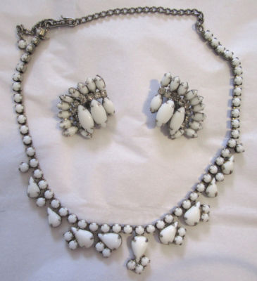 Title (ebay affiliate link): KRAMER MILK GLASS EARRINGS & UNSGND MILK GLASS NECKLACE