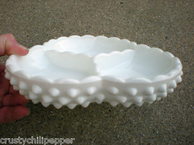 FENTON HOBNAIL MILK GLASS DIVIDED CANDY or RELISH DISH