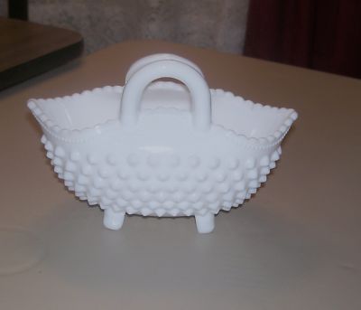 Fenton Milk Glass Hobnail 2 Handles Oval 4" Basket Nice